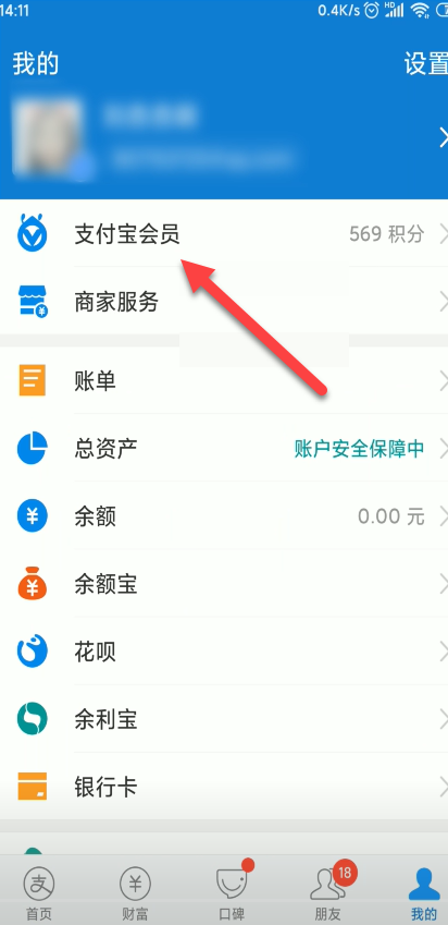 2、点击我的界面中的支付宝会员,进入支付宝会员页面。