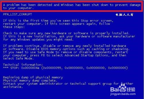 8、最后,也是最重要的讯息:Technical information(技术信息):STOP:0x0000004E(停机简码4E)后面的内存溢出地址对普通用户来说没有意义。