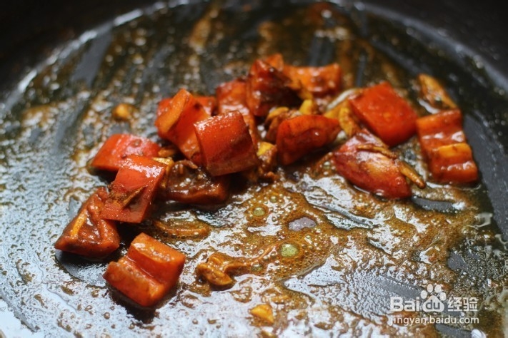 3、锅里烧红加入适量的油,姜、蒜炒至香味;