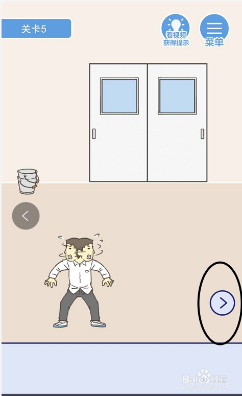 1、打开我要翘课手游,点击第五关,开始第五关的挑战。进入到第五关的挑战页面之后,点击下图所示位置处的箭头,显示右侧的地图。