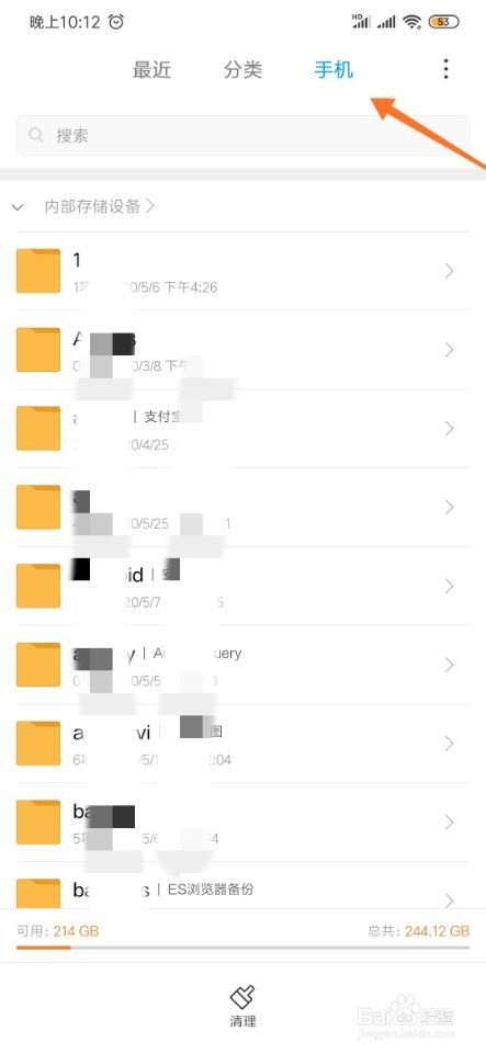 1、打开手机,找到“文件管理”并点击进入,然后点击切换到“手机”栏目如下图所示: